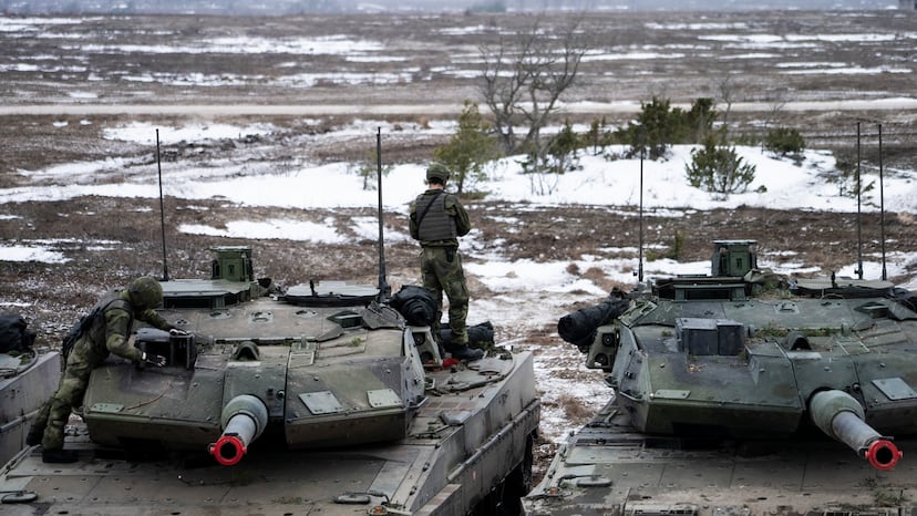 El sargento Björn Edvinger, de 33 años, conduce hasta la loma. La temperatura ronda los -4º, pero la humedad es alta y el frío atraviesa los huesos. El camión militar, provisto de ruedas todoterreno de envergadura, se enfanga entre la nieve y la tierra. Un instante después de hacer cumbre, rugen por uno de los costados cuatro tanques de un pelotón del regimiento P18 hacia una arboleda. Son los Stridsvagn 122, una versión mejorada de los Leopard alemanes. Primero el silbido de la munición, luego el estruendo. Los cañones disparan proyectiles del 25, un calibre menor utilizado en ejercicios como este. “Necesitamos poder levantarnos contra una amenaza extranjera llegado el momento”, explica junto a su blindado el recluta Gustav Arnström, de 19 años. Localización de las maniobras: costa occidental de la isla sueca de Gotland, en el mar Báltico. El objetivo es repeler una ofensiva aerotransportada. El enemigo en mente: Rusia.