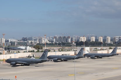 A Israel siguen llegando también aviones militares de EE UU. Las imágenes satelitales han captado este viernes movimiento de 11 F-22 (un caza furtivo de quinta generación que figura entre los más avanzados del mundo) en la base aérea de Ovda, en el sur. Los F-22 se suman a la ―también inusual― presencia de aviones estadounidenses de reabastecimiento y de carga en Ben Gurión, el aeropuerto cercano a Tel Aviv que ejerce de puerta de entrada de casi todo el tráfico aéreo civil. Hasta 14 han aterrizado esta semana, nueve de ellos esta noche.