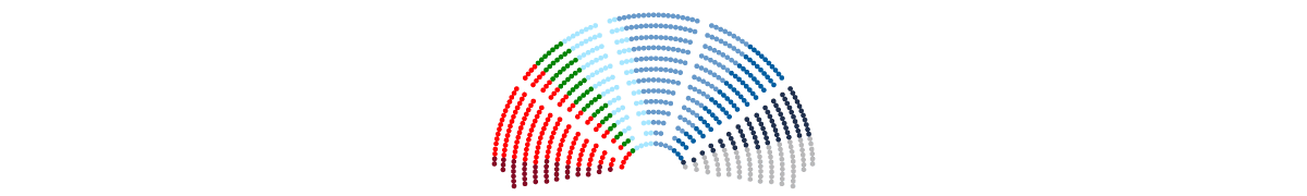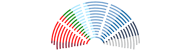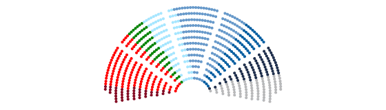 La agrupación más numerosa de la legislatura que ahora termina es la del Partido Popular Europeo, dominada por la CDU, los democristianos alemanes, a los que sigue la delegación española del PP. Los socialdemócratas, el segundo grupo más numeroso, están encabezados por el PSOE español. El resto de familias hasta que las urnas vuelvan a agitar el hemiciclo son, por orden de fuerza, los liberales, dos familias de ultraderecha y otras dos de izquierda y verdes.