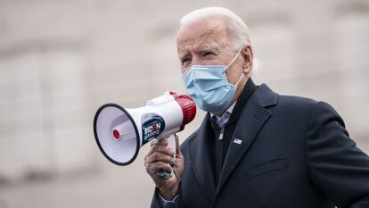 Salvo el puñado de periodistas empotrados en la caravana demócrata, el resto a duras penas ha logrado enterarse de dónde tendría lugar el siguiente mitin, solo aproximadamente, un par de datos orientativos (e insuficientes, dadas las distancias en el país): la franja horaria y el Estado, con suerte la ciudad. A Biden se le reprocha no haber salido prácticamente de su casa en Wilmington (Delaware) hasta la recta final de la campaña, también su distancia de la gente, pero este modo de hacer campaña ha sido también su principal mensaje: la prioridad será resolver la crisis sanitaria de la covid-19, cuando el país supera récords de contagios (más de nueve millones confirmados, solo 90.000 este viernes) y sobrepasa los 230.000 muertos.