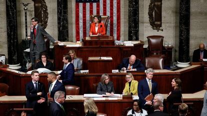 Los demócratas mantienen la mayoría lograda en 2018 en la Cámara de Representantes. Aunque esperada, esa ventaja constituye una de las pocas certezas de la noche electoral estadounidense. Se trata de un espacio de poder no menor, pues en el último año ha obligado a los republicanos del Senado a negociar cualquier medida económica de calado, ha permitido investigar al presidente y hasta aprobar un impeachment. El análisis, sin embargo, era igual de ambiguo que la elección presidencial este miércoles por la mañana. El grupo liderado por Nancy Pelosi había perdido al menos cinco escaños netos (dos ganados a los republicanos, menos siete perdidos). En estas elecciones se renovaba la totalidad de los 435 escaños de la Cámara baja, en la que los demócratas tienen 232 asientos frente a los 197 de los republicanos.
