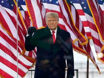 “Hoy va a ser un día histórico en la historia de nuestra nación”. La primera frase del correo electrónico enviado por el equipo de Donald Trump a sus seguidores a las 13.26 de este miércoles, el enésimo mensaje para pedirles dinero para su lunática cruzada por no abandonar la Casa Blanca como un perdedor, iba a resultar dolorosamente premonitoria. “El Congreso o bien certificará, o bien objetará el resultado de las elecciones”, seguía el mensaje. Pero no eran los legisladores a los que señalaba el texto los que habrían de convertir la jornada en histórica, sino algunos de los seguidores del presidente.