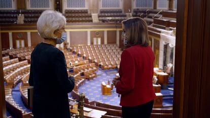 Un grupo de republicanos ha dirigido una carta al futuro presidente para pedirle que hable con Pelosi y la convenza para detener el proceso de impeachment contra Trump. Se trata de siete congresistas, liderados por Ken Buck, de Colorado, que también se opusieron a los legisladores de su partido que pensaban torpedear la confirmación de Biden en el Congreso mediante una batería de objeciones. En su misiva, fechada este sábado, advierte al presidente entrante: “Un segundo impeachment, a solo días de que el presidente deje su cargo, es tan innecesario como incendiario. Este impeachment socavará su prioridad de unir a los estadounidenses y supondría una distracción más para nuestra nación (...) Respetuosamente, le urgimos a animar a la presidenta Pelosi a dejar a un lado este intento partidista inmediatamente”.