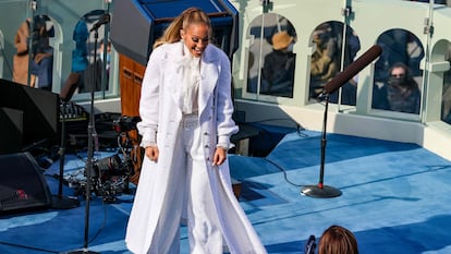 La cantante Jennifer Lopez, que ha cantado ‘This Land is your land’ tras Lady Gaga no ha dejado de pasar la oportunidad para lanzar un grito en español: ”¡Una nación, bajo Dios, indivisible con libertad y justicia para todos!”