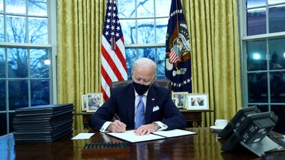 Sin perder un minuto, cinco horas después de jurar como 46º presidente de EE UU, Joe Biden ha firmado una quincena de órdenes ejecutivas que revierten, la mayoría de ellas, medidas de la Administración de Donald Trump.