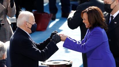 Joe Biden ha jurado este miércoles en Washington como nuevo presidente de Estados Unidos. “La democracia ha ganado”, ha dicho en su discurso inaugural a las puertas del Capitolio, en un día en que Kamala Harris se ha convertido en la primera vicepresidenta de la historia del país. Desde la salida de Donald Trump de la Casa Blanca hasta la ceremonia en el cementerio de Arlington, el día ha estado plagado de escenas y momentos simbólicos. Aquí un recuento de algunos de ellos.
