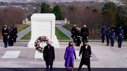 Tras la ceremonia de juramento Biden y Harris se trasladaron al cementerio de Arlington donde depositaron una ofrenda ante la tumba del solado desconocido.