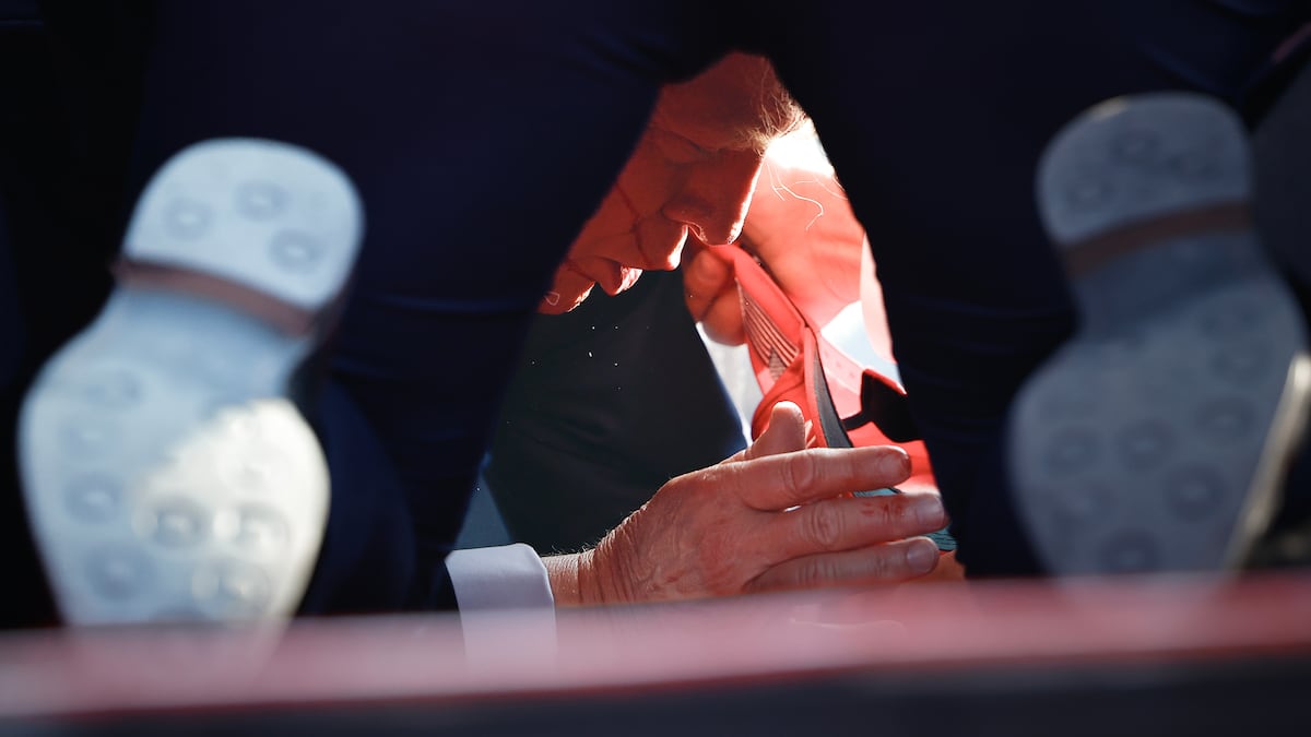 Al oírse los disparos y echarse Trump al suelo, policías fuertemente armados subieron al escenario entre los gritos del público asustado, que trataba también de protegerse. “El tirador ha caído”, gritaban los agentes, después de que uno de los suyos respondiese al fuego desde un tejado. El expresidente se puso en pie, rodeado de escoltas, y pidió recuperar los zapatos. Fue evacuado del escenario con algo de sangre en la cara que salía de la zona de la oreja, con los agentes del servicio secreto alrededor, pero en aparente buen estado. Con gritos de “U-S-A”, las siglas en inglés de Estados Unidos de América, sus seguidores celebraban que se retirase por su propio pie y sin aparentes heridas graves. Levantó el puño varias veces, dejando unas icónicas imágenes para la historia.