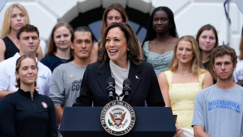 Harris compareció en los jardines de la cara sur de la Casa Blanca, donde la esperaban centenares de jóvenes llegados de todo el país a un evento que se celebra cada año en honor de la NCAA, la Asociación Nacional de Atletismo Universitario. Es la encargada de regular el deporte juvenil en aproximadamente 1.100 centros educativos en Estados Unidos.