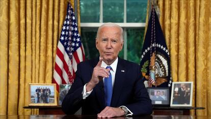 Históricamente, los discursos presidenciales desde el Despacho Oval marcan momentos trascendentales en los que los mandatarios hablan a sus compatriotas en mitad de serias crisis nacionales o para hacer anuncios de gravedad. Era la cuarta vez que Biden escogía ese solemne escenario para dirigirse al pueblo estadounidense. Dice mucho del extraordinario momento que está viviendo el país en este verano del descontento que dos de esas ocasiones hayan sido en el espacio de una semana y media: la anterior fue el 14 de julio, al día siguiente del atentado contra Donald Trump en un mitin en Pensilvania. Las otras dos veces fueron para hablar del ataque de Hamás en Israel del pasado 7 de octubre y para elogiar la aprobación de un acuerdo presupuestario entre ambos partidos que prolongó el techo de deuda hasta enero de 2025.