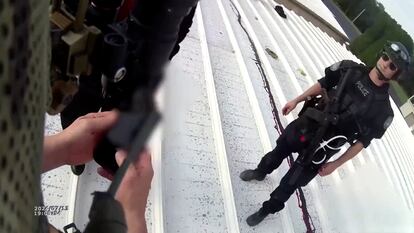 Nuevas imágenes del atentado contra Donald Trump mientras daba un mitin en Butler (Pensilvania, EE UU). La oficina del senador republicano Chuck Grassley ha difundido un vídeo de una cámara corporal donde se ve al Servicio Secreto de EE UU y el cuerpo del tirador que atentó contra el expresidente. En el vídeo que encabeza esta noticia, se muestran las imágenes de varios funcionarios en la azotea donde encontraron al tirador, identificado como Thomas Matthew Crooks.