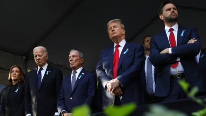 Kamala Harris y Donald Trump no se habían visto nunca en persona antes del debate de Filadelfia de este martes. Este miércoles por la mañana, solo horas después del cara a cara televisivo, han vuelto a darse la mano, esta vez en Nueva York, en el homenaje a las víctimas de los atentados del 11-S. Allí estaban ambos, a poca distancia y con el presidente de Estados Unidos, Joe Biden, entre ellos. Los tres protagonistas de los dos últimos debates presidenciales, juntos. Aunque solo han pasado dos meses y medio de la cita que enfrentó a Biden y Trump, el estado de ánimo, especialmente de los demócratas, no puede ser más diferente. De la alarma desatada por el derrumbe del presidente en Atlanta se ha pasado a la euforia, aunque contenida, tras la victoria de Harris frente al republicano en el cara a cara del martes.