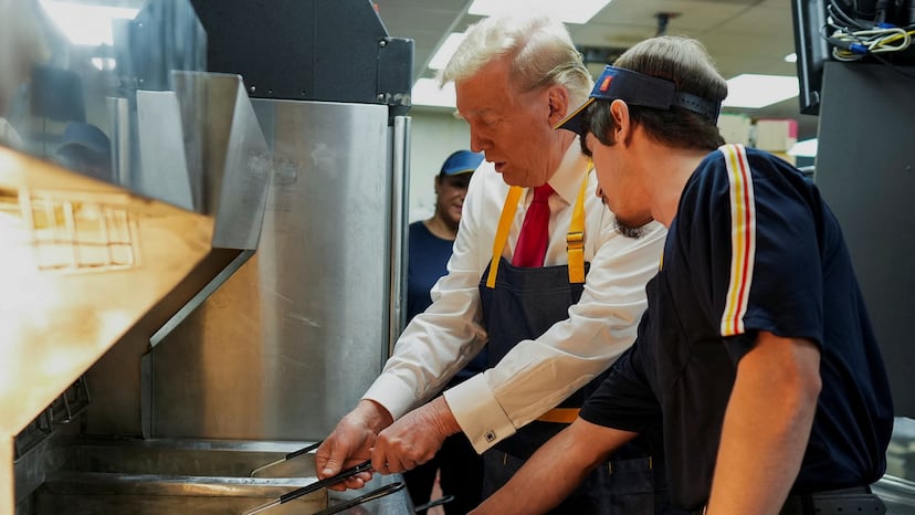 Pocas cosas hay tan estadounidenses como un McDonald’s. La cadena de hamburguesas de los arcos dorados tiene unos 42.000 restaurantes por todo el mundo, de los que unos 13.500 están en Estados Unidos, según su último informe anual. El candidato republicano a la presidencia, Donald Trump, puso este domingo a McDonald’s en el centro de su batalla contra Kamala Harris. La demócrata asegura que trabajó en uno de ellos un verano cuando era estudiante. Trump dice que es mentira, basándose en que nadie lo ha demostrado. Este domingo, se plantó en un restaurante de la cadena en Pensilvania para freír patatas y trolear a la demócrata.