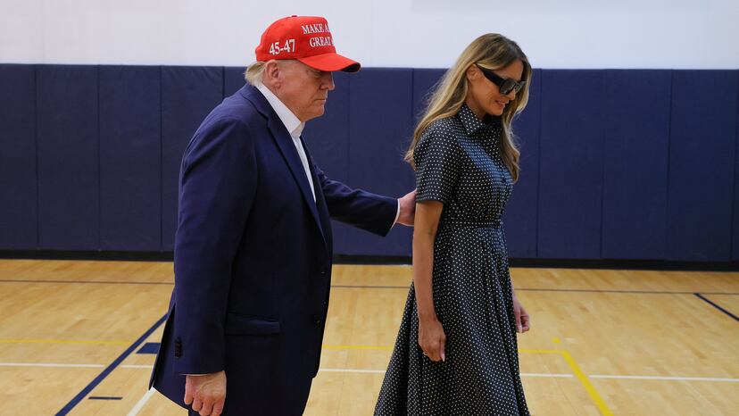 Y así pudo Trump presentarse a depositar su papeleta poco antes de mediodía en un colegio electoral de Palm Beach, vestido con uno de sus característicos trajes azules, pero sin corbata, acompañado de su esposa, Melania, pero no del hijo de ambos, Barron, que cumplió 18 años en marzo y, por tanto, está en condiciones de estrenarse como votante. Trump también vestía una gorra roja con el lema, su lema, Make America Great Again (Devolvamos la grandeza a Estados Unidos), pese a que la ley estadounidense prohíbe acudir a las urnas exhibiendo mensajes políticos.