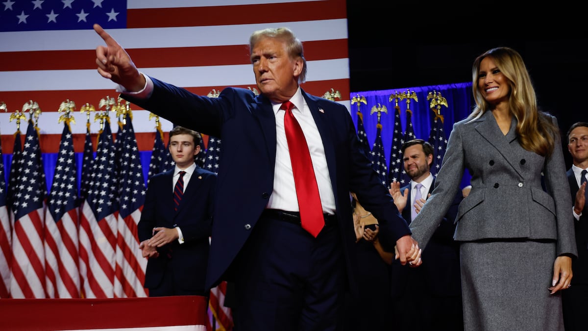 El republicano celebró su victoria, antes de que fuera definitiva, en una fiesta al efecto en West Palm Beach (Florida), cerca de su mansión de Mar-a-Lago. “Hemos logrado una victoria política que nuestro país no había visto nunca, nada como esto”, dijo. Prometió “ayudar a sanar” Estados Unidos, que iniciará una “edad de oro”, dijo. “Vamos a arreglar todo lo que está mal en este país”, añadió. Acompañado, entre otros, por su mujer, Melania Trump, y el que será su vicepresidente, J. D. Vance, agradeció a Elon Musk también presente, su apoyo en la campaña. Por supuesto, pronunció su lema: “Hacer grande a Estados Unidos de nuevo”.