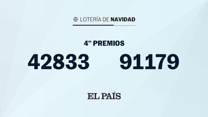 Los dos cuartos premios del sorteo de la Lotería de Navidad, el 42833 y el 91179, premiados con 20.000 euros al décimo o 1.000 por cada euro apostado, se han repartido por buena parte de España, aunque hay administraciones que han acaparado buena parte de los millones en juego, como el caso de la número 3 de Jaén, en la calle Navas de Tolosa. Su dueña, Francisca Martín, ha repartido 6,8 millones del 91179. Tenía 34 series, a 20.000 euros el décimo, aunque no las ha vendido todas. “Ya hacía falta, Jaén lo necesita”, explicaba a EL PAÍS. Con todo, donde más décimos se han vendido de estas combinaciones ha sido en Illa de Arousa (Pontevedra) y El Espinar (Segovia), donde los estudiantes de un centro de secundaria y un equipo de fútbol han llevado la suerte a sus vecinos. El Gordo ha sido para el 86148.