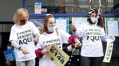 Su compañero, José González, que lleva 21 años trabajando aquí, llegaba a mediodía para celebrarlo con una camiseta en la que se leía: “Primer premio vendido aquí”. “Esto es una alegría inmensa. ¡Me he venido corriendo!”, decía emocionado mientras destapaba una botella de champán. Él asegura que la mayoría de los décimos se vendieron en noviembre, aunque señala que la administración devolvió tres series antes del sorteo.