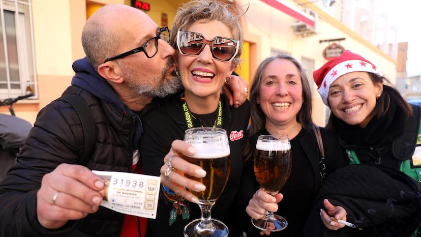 En el bar El Cultural de La Canyada vuelan los platos de marisco y las botellas de champán. A las puertas, en la calle, está Almudena Hernández, quien planea un viaje con su marido, Juan, y con sus hijos, Noel, de 3 años, y Amaia, de 9, que propone Maldivas como destino, aunque según su madre, lo más probable es que acaben en Eurodisney. “Lo mejor es esto”, señala con el brazo a su alrededor, “todo el pueblo feliz, es un gran día de celebración”. También festejan junto a la iglesia Fátima Orozco y Paco Barceló, a quienes les ha tocado “un buen pellizco” y quieren “hacer un viaje a Escocia y comprarle un piso a nuestra hija”. Ella trabaja en un centro comercial de Villena, la capital comarcal, y actúa en el auto de Reyes; él es el encargado de la almazara de la cooperativa San Cristóbal y se ríe con que le haya tocado el premio después de todo un año “trabajando con el oro líquido”, el aceite. Al alcalde, Rafael Serrano (PP), le ha tocado un décimo. A la concejal de Cultura, Cristina Galvañ, también. “Todo el pueblo lleva lotería, vamos a disfrutar de unas buenas navidades”, confía la edil.