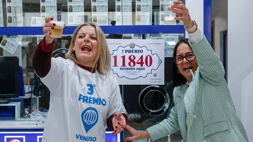 Las hermanas Mariam y María José Bort, que han vendido el tercer premio 11840 entre sus vecinos, voluntarios, policías y militares de Catarroja -uno de los pueblos de la zona cero de la dana- sentían que el bombo se acordaría de su administración. “Sabíamos que íbamos a dar un premio por lo que hemos padecido y por lo hemos vendido”, ha contado Mariam al periodista de EL PAÍS Ferrán Bono. El tercer premio supone 120.000 euros por cada décimo. En total, han repartido 1,2 millones de euros. Su administración sigue aún a medio montar y, tal y como explica María José, “el agua superó los dos metros de altura”. Pudieron volver a abrir 36 días después de la dana.