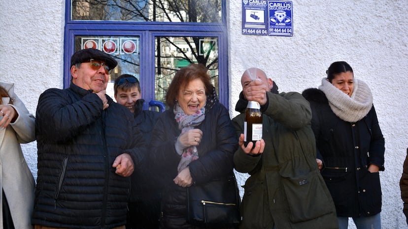 La champaña se descorcha en Móstoles, se mojan hijos, padres y salpican a unos curiosos que han salido de un bar cercano preguntando: “¿Aquí que ha tocado?”. Pues había tocado el segundo premio íntegro. Una vecina se acerca con los brazos abiertos: “Yo pensé que te había dado un infarto”, bromea con Conchi. A su lado, su esposo Niceto hace cuentas de la repartición del premio: “Vamos a reformar la casa, lo demás para pagar unas deudas y el resto para la jubilación”, señala con voz ronca. Con 65 años ella y 66 él, les ha llegado en el mejor momento. Conchi insiste en su bañera y pide que llamen a la dueña de la administración para que venga a abrir y festejar como es debido.