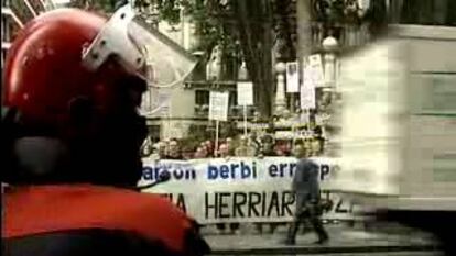 Decenas de vecinos de Ondarroa (Vizcaya) se han concentrado hoy frente a la sede del PNV en Bilbao para pedir que se respete la voluntad del pueblo