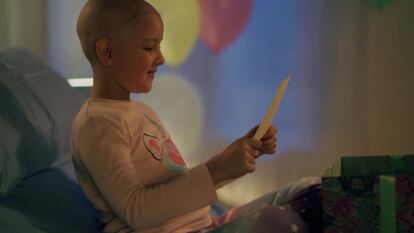 Quien tiene un amigo tiene un tesoro. Este es el mensaje esperanzador que ha querido transmitir este 2021 la Fundación Juegaterapia con motivo del Día del Niño con Cáncer, que se celebra este lunes 15 de febrero. En un video de poco más de un minuto se ve como una pequeña, enferma y en tratamiento de quimioterapia, abre una caja. Saca entonces una carta y comienza a leer: “Hola, María, feliz cumple. No sabía que regalarte, mi paga no da para mucho... por lo que he decidido contarte cosas que no puedo regalarte, pero que me gustaría regalarte, cosas que vas a necesitar, y lo sé porque hace un tiempo yo estaba como tú. Te dejo mi foto”.
