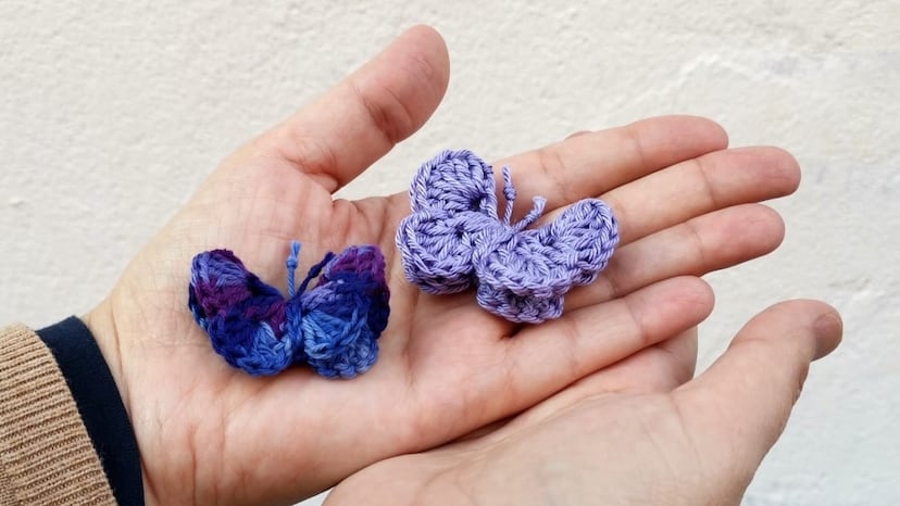 Tejer mariposas con hilo violeta