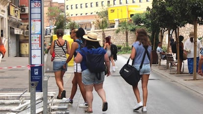 Entre las calles del centro de Málaga, Carretería se ha convertido en una de las más demandadas por los turistas. Un grupo de cuatro chicas y un chico llegados desde Alcoy (Valencia) con varias maletas y mochilas eligieron la capital malagueña para pasar cinco días de vacaciones. “Queríamos algo en el centro, pero que no fuera tan caro. Nos pareció bien la ubicación y el precio en esta calle”, cuenta Laura Pérez, de 20 años.