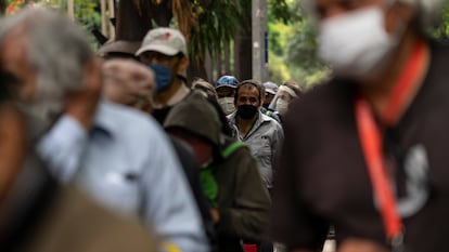 “Ay mijo, yo vendía en los tianguis de mi barrio juguetitos y me sacaba unos pesitos para comer que me ayudaban con la pensión. Pero este problema del virus me ha dejado sin esos ingresos”. Socorro Barroso tiene 78 años y un hilito de voz que apenas se puede distinguir tras el cubrebocas. Anda despistada de fila en fila preguntando dónde se debe poner, ya que nunca había tenido que recurrir a la solidaridad para recibir comida. El viaje desde la alcaldía Gustavo A. Madero en el Metrobús lo hace con precaución, pero sin miedo. “Me dijeron que no salga por el virus, pero no me queda de otra porque tengo que comer. Unas vecinas me dijeron que aquí daban comida y pues a eso vengo. Al final a mi edad, será lo que Dios quiera”, cuenta.