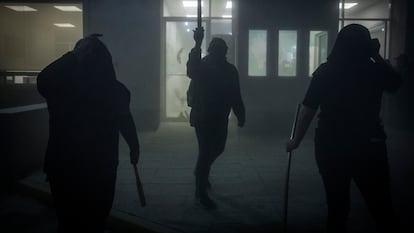 Las mujeres pudieron grabar buena parte del desalojo. Las imágenes prueban la violencia de los agentes, también con periodistas que se habían acercado al lugar. “[Los policías] rompieron los cristales del coche de una reportera cuando ya se marchaba. Fue un grado de violencia no solo física, sino también verbal. A una compañera la agarraron por su gafete de prensa que llevaba en el cuello y le dijeron que (no les importaba que fuera prensa, que la iban a matar”, explica Andrea Murcia, fotógrafa que cubría los hechos la madrugada de este viernes. Durante horas, periodistas e integrantes del grupo que había tomado la instalación denunciaron la desaparición de algunas de sus compañeras, pero ya en la mañana se supo que estaban detenidas en el Centro de Justicia de Atizapán de Zaragoza, no muy lejos de Ecatepec.