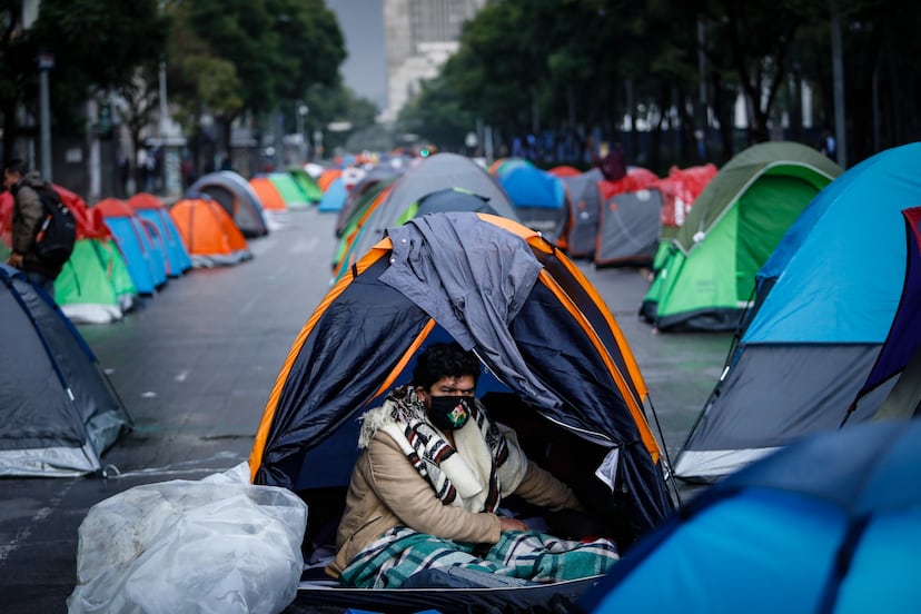 La oposición más radicalizada contra el Gobierno mexicano tiene dos enemigos principales: Andrés Manuel López Obrador y la lluvia. En el plantón del Frente Nacional AntiAMLO (Frena) en Ciudad de México se ven más colchonetas y ropa mojada secándose al sol que pancartas y arengas contra el presidente. La consigna del movimiento era plantarse a partir del fin de semana hasta que López Obrador dejara el poder, pero las trombas que han caído en los últimos días aguaron la protesta. Las tormentas han dejado cientos de tiendas de campaña vacías, en una estampa que ha desquiciado el tráfico en las concurridas calles del centro de la capital y que ha desatado las burlas y las críticas de los sectores más fieles a la tribuna presidencial.