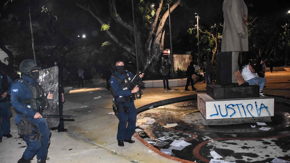 La policía de Cancún disuelve a tiros una manifestación feminista