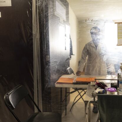 Los nueve enfermos de este CAV tienen a su disposición a dos doctoras y tres enfermeros, que les miden tres veces al día los signos vitales, les dan medicación si necesitan y esperan detrás de una gruesa cortina de plástico para ver cómo evolucionan, cómo mejoran. Una atención personalizada prácticamente imposible de conseguir en esta ola de casos en ningún otro centro de la ciudad.