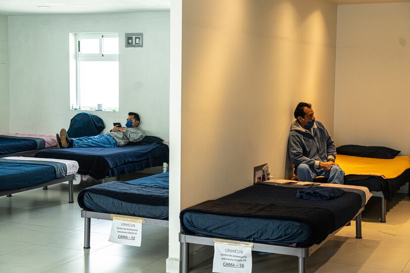 “Fue difícil tomar la decisión de aislarme aquí, pero lo hice por la familia. Mis papás ya son mayores. Quería terminar la cadena de contagios”, cuenta este empresario de 38 años, después de nueve días en el CAV. Velázquez ocupa el primer lugar a la derecha de una planta con 31 camas, ordenadas como si fuera un campamento militar, con cobijas azules y amplias ventanas. A la izquierda queda una mesa de plástico todavía con restos del desayuno, cereales, tacos y el envase de leche.