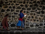 Entre los indígenas persiste el fervor católico llegado de ultramar. Las mujeres, con la vestimenta tradicional de naguas y rebozos adornados a punto de cruz, bordan, guisan y rezan. Es Cuaresma y los altavoces invaden todo Angahuan de punta a punta desde la emisora de radio ubicada en las dependencias de la iglesia. Cantan en su idioma original y procesionan un Cristo de falda morada. Cae la noche, pero los rezos no cesan, atronadores, por la megafonía. El cielo de la noche y el de la madrugada estará atravesado de cohetes. Y los perros ladrarán. En el templo cuelga una Purísima Concepción firmada por el indígena Francisco Antonio, de mediados del siglo XVII. “La primera pintura fechada entre todas las que se conservan de Michoacán”, recuerda la doctora en Historia del Arte Nelly Sigaut, que conoce al dedillo la ruta artística de esta meseta y su enorme valor.