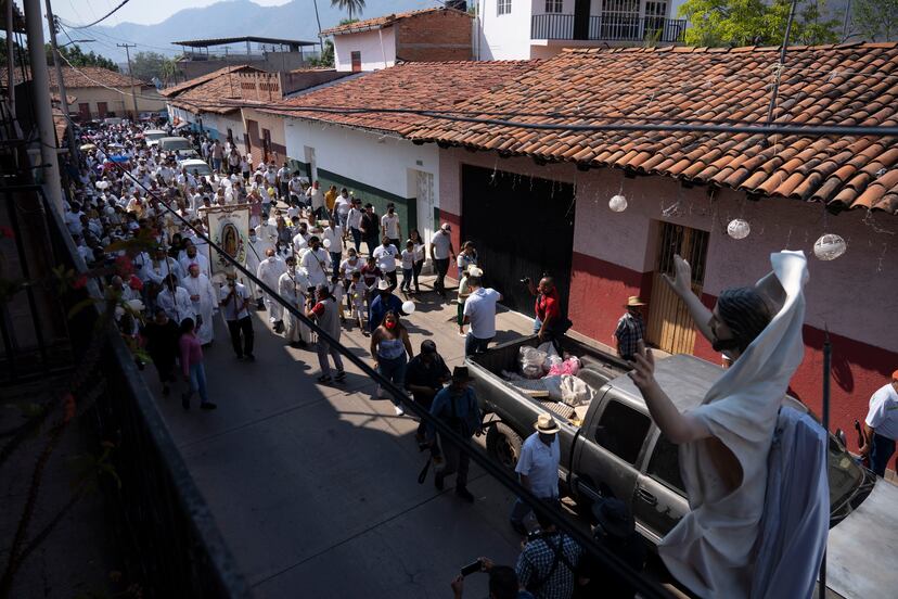 Coppola ha llegado a Aguililla a las 11.00 de la mañana. Una multitud le esperaba en una glorieta a la entrada del municipio. Desde allí, todos han caminado hasta el centro, hacia el colegio donde se celebraría la misa. “Estas calles tomadas por el crimen, las ha caminado el pueblo con Cristo resucitado”, ha dicho el religioso.