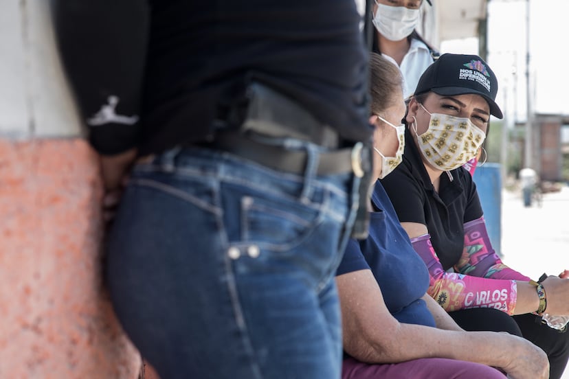 Es miércoles, cinco de la tarde y Maribel de 33 años recorre las tiendas del pueblo bajo un sol de justicia para hablar con los comerciantes. En tres horas ha entrado en la pastelería Baeza, un café-internet, la papelería ‘El rincón de los detalles’, un abarrote y una talabartería que vende sillas de montar y cinturones piteados. El jueves repite con los vecinos. “Ir de puerta en puerta es lo más cansado, pero lo más efectivo”, dice secándose el sudor, “te permite escuchar y poder llegar con propuestas concretas”. Juárez necesita unos 4.200 votos para poder ganar las elecciones y reelegirse como alcaldesa, puesto al que llegó en 2018 y al que ha sido obligada a presentarse nuevamente por la cuota de género impuesta por el Instituto electoral (INE) a los partidos.
