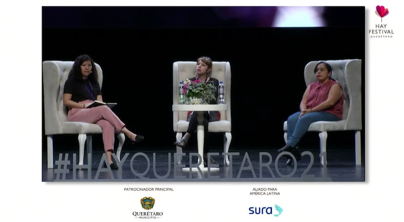 Luciana Kaplan, directora de la cinta sobre Marichuy, conversa con Samantha César, del Congreso Nacional Indígena, en una charla moderada por Sonia Corona de EL PAÍS