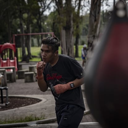 Y tú, ¿por qué empezaste a boxear? Qué pregunta, dicen sus ojos -los de todos y todas- antes de contestar: ¿por qué no iba a boxear, qué tiene de malo? Kaleb Tafoya, de 15 años, cuenta que eligió los guantes porque en la escuela sufría bullying. Su hermana, Aylyn, que tiene nueve, se solidariza con su hermano: “Creo que quiero boxear para que los niños no me quieran pegar”. Algo parecido recuerdan los hermanos Alejandro y Andrés Martínez, que triplican la edad de la pequeña. Otros aseguran que se acercaron al ring por “no andar de flojos en casa” y algunos resuelven la cuestión con un sencillo “por probar”. En varias visitas a gimnasios de boxeo, escuelas y parques de Ciudad de México estos días, las preguntas parecían sobrar.