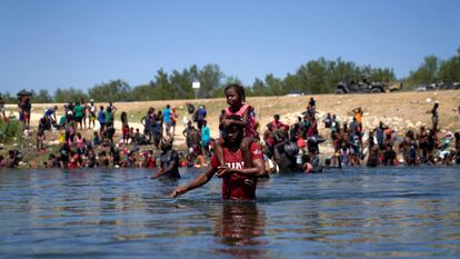 Fuera de la tienda de campaña, unas 10 personas se encorvan sobre una mesa donde pueden cargar la batería de sus celulares. Un cablerío blanco y las pantallas brillantes sobre los rostros. Desde allí, se comunican con sus familiares, los que están en Haití y los que viven en Estados Unidos. Marco Louiville, de 25 años, y su pareja, que está embarazada, viajarán a Miami, donde tienen parientes. En esa ciudad, espera poder empezar a trabajar como conductor de tractores. “Pasamos mucho para estar aquí”, dice. Incluso en los últimos días. Las cámaras grabaron el domingo escenas a lo largo del río Grande en las que agentes de la Patrulla Fronteriza montados a caballo intentaban agarrar a los migrantes y utilizaban a los animales para empujarlos hacia México. Este lunes, las autoridades de EE UU emitieron un comunicado en el que anunciaban una investigación formal sobre los hechos.