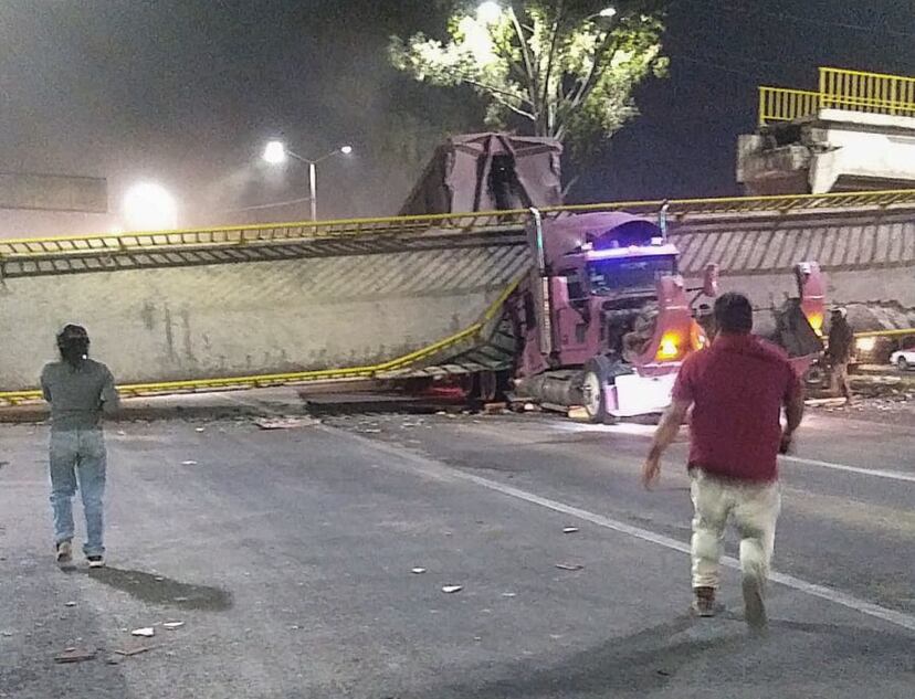 Un tráiler destruye un puente peatonal en la autopista México-Texcoco