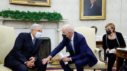 Los tres mandatarios, que según ha informado el canciller mexicano, Marcelo Ebrard, han mostrado “afinidad política y buena química” en una reunión de dos horas, han acordado celebrar la cumbre de 2022 en Ciudad de México. López Obrador traía su mensaje claro a Washington, y lo ha repetido en tres ocasiones. “Celebramos que [Biden] haya enviado la iniciativa al congreso de regular inmigrantes y que ojalá los legisladores la apoyen, porque es justo (...). No hay ninguna iniciativa mejor que esa en el terreno migratorio. Nosotros vamos a estar observando ese proceso”, ha dicho antes de verse con Biden el mandatario mexicano a la vicepresidenta Kamala Harris. Después, en su reunión bilateral con el demócrata, ha resaltado que se trata de una iniciativa que “beneficia a millones de migrantes mexicanos que viven y trabajan honradamente en Estados Unidos”. “Es una iniciativa para hacer justicia”, ha enfatizado López Obrador, abundando en la idea repetida durante esta semana de que considera que ha llegado el momento de que la comunidad mexicana (formada por 38 millones de personas) presione a senadores y congresistas a la manera que lo hacen, con indudable éxito, lo cuatro millones de cubanoamericanos.