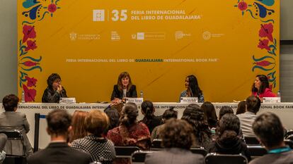 Warkentin hablaba en la charla La Lucha de las Mujeres contra la Discriminación organizada en la Feria del Libro de Guadalajara, junto a Marion Reimers —periodista deportiva y fundadora de una ONG que combate la discriminación de género—, Alma Delia Murillo, novelista y autora de Cuentos de Maldad, El Niño que fuimos, Damas de Caza y Las Noches Habitadas, y Sonia Corona, jefa de redacción de EL PAÍS en México, que moderó la mesa. “La voz debe estar acompañada de redes emocionales”, añadió Warkentin en su primera intervención, “la sororidad no es un tema de militancia, es un tema emocional”. Tres mujeres que han logrado en los últimos años que su voz resuene sin quebrarse en el debate público de la política, los deportes y la literatura.