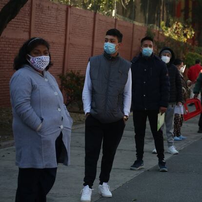Es una paradoja. A cambio de esa tranquilidad, uno se forma con muchísimas personas que sospechan que tienen el virus, prácticamente codo a codo y muy temprano en la mañana, cuando más frío hace. “Da un poco de miedo, aquí no se guarda mucho la sana distancia que digamos”, admite Carlos González, un profesor de música de 32 años que se aleja tanto como puede de la fila. “Esta es la tercera vez que vengo aquí a hacerme la prueba y nunca me había tocado tanta gente”, agrega. Jonathan Puebla, de 33 años, da un ejemplo para explicar el cambio. Hace un mes llegó a las siete de la mañana y le tocó el turno 17. Hoy vino media hora antes y le tocó la ficha 69. “Entre que es gripa o es covid, aquí andamos, es la duda que tenemos todos”, dice Puebla, que se sienta sobre una jardinera para paliar el cansancio.