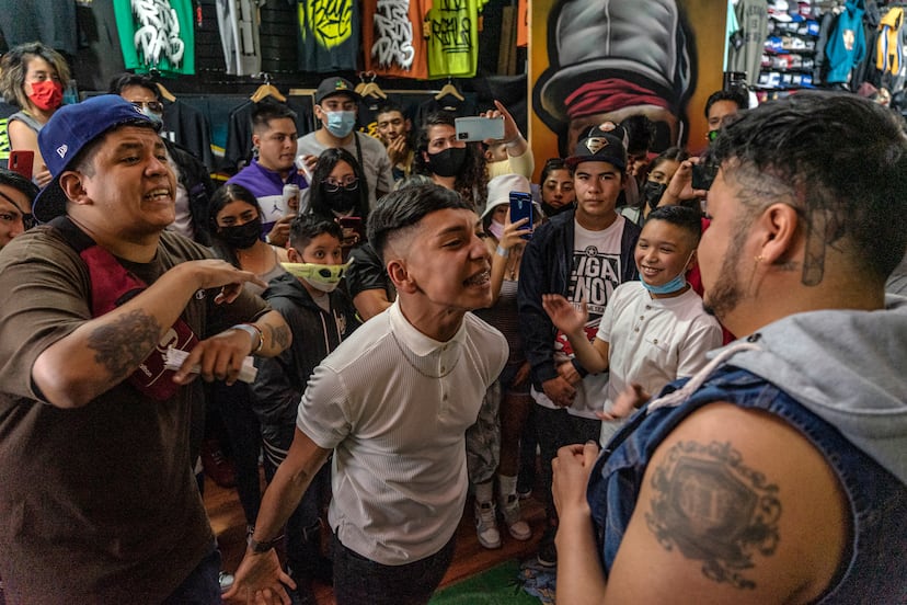 Es el segundo sábado de 2022, y el clima es más frío de lo que suele en la capital, con un sol de invierno tímido en el cielo. A partir de las dos de la tarde decenas de jóvenes empiezan a reunirse en Revolución en torno a un banco donde alguien apunta las inscripciones para la batalla. Empieza a oler a mota. Un grupo de adolescentes improvisa como calentamiento alrededor de un altavoz que han traído de casa. Más de 110 freestylers competirán hoy, aunque los jueces harán una gran purga y a la siguiente ronda, octavos de final, solo pasarán 32 de ellos. La estética no ha cambiado mucho desde el origen del género: skates, camisetas anchas de equipos de baloncesto estadounidense, otras con letras grafiteadas, vaqueros tres tallas más grandes, chándal, gorras planas, sneakers.