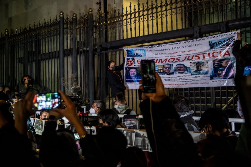 En las escaleras de la entrada de la dependencia, reporteros tomaban el micrófono en procesión, un ejercicio catártico sobre las penalidades del oficio, sobre todo en el ámbito local, en pueblos y ciudades medianas donde las mafias envenenan la vida pública. Todo eran reclamos a un Gobierno al que sienten lejano. “¿Dónde está Encinas?”, ha dicho uno, en referencia al subsecretario de Gobernación encargado de velar por los derechos humanos en el país. Ningún representante del Gobierno ha aparecido en la protesta.