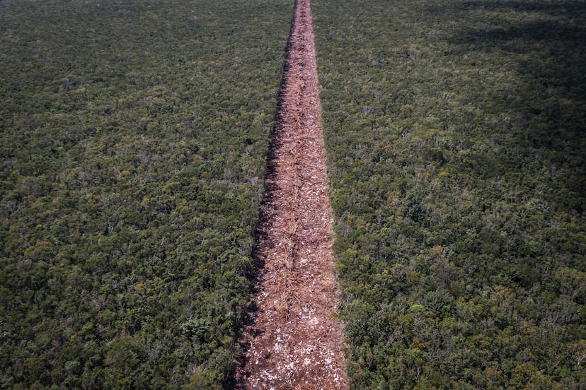 El rechazo ciudadano ha ido creciendo desde entonces: el pasado 6 de marzo, decenas de personas se manifestaron en la selva virgen recién cortada por la maquinaria pesada. Junto a un letrero de “No al Tren Maya” se dejaba ver un boquete en el suelo, advirtiendo de lo que hay debajo de este terreno. Desde el Gobierno, el baile de cifras de la tala asociada al tren ha sido tan mareante como una noche de reguetón. Del ‘no se talará ni un solo árbol’ entonado por el presidente a principios de su mandato, a las 800 hectáreas declaradas en la Manifestación de Impacto Ambiental para los tres primeros tramos (de un total de siete), a la ausencia total de números para el nuevo trazo del tramo 5, el que va de Cancún a Tulum. Por no ser, ese tramo no es ni oficial, aunque el avance de la obra ya se ve a ojo de dron. La organización ambientalista MOCE Yax Cuxtal tiene un estimado: en los 120 kilómetros que hay entre esas dos ciudades se talarían al menos 8 millones de árboles. Quizá sea menos. Pero las autoridades no saben.