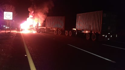 La detención de Aldrin Miguel Jarquín, alias El Chaparrito, presunto líder del Cartel Jalisco Nueva Generación de Colima, ha provocado de nuevo el caos en el Estado. Jarquín fue detenido este domingo en Zapopan (Jalisco) y como respuesta, sus lugartenientes han incendiado traileres y camiones en carreteras de Colima y Cuauhtémoc. La entidad costera de menos de un millón de habitantes se ha convertido en los últimos años en una de las más violentas del país y la reciente batalla de grupos del narco ha provocado escenas más propias de una guerra. Los narcobloqueos suponen un aviso de que, como ha sucedido en otros Estados de México, la violencia del narco continúa pese a algunos intentos del Gobierno de recuperar su poder en la zona.