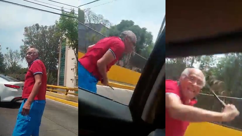 En plenos carriles centrales de Circuito Interior, una de las vías con mayor circulación vehicular de la capital de México, un hombre atacó con un bastón a una familia que permaneció en su coche. En el vídeo compartido en las redes sociales, se observa cómo el agresor sale de su auto con una vara en la mano y comienza a golpear el otro vehículo mientras hace señales para que se bajen los ocupantes. De fondo, los gritos de una niña aumentan la tensión mientras el hombre de unos 60 años azota las puertas y la parte frontal del vehículo. “Viene mi hija, viene mi hija”, clama una mujer al bajar el vidrio para intentar tranquilizar al atacante.