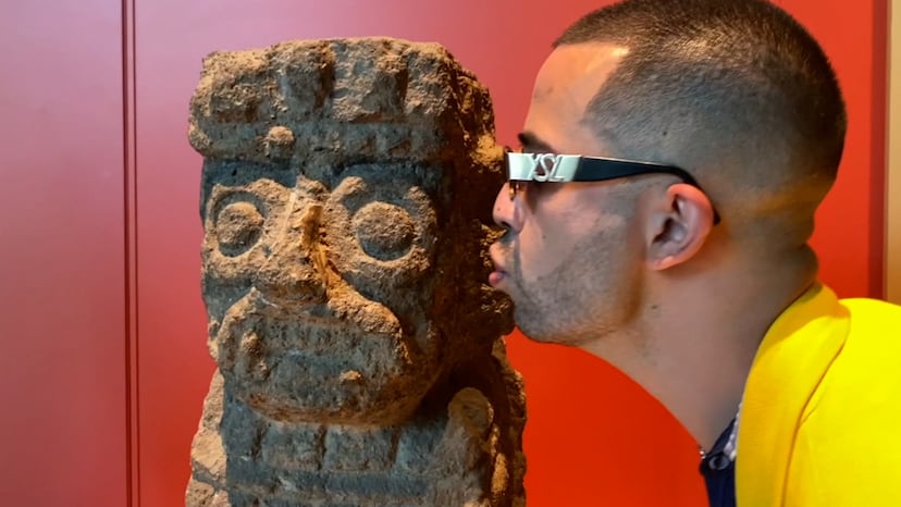 Vestido con un traje amarillo y lentes oscuros, el también actor y director de teatro acerca sus labios, da besos largos y pasa su lengua por las esculturas de alto valor histórico y cultural, según se observa en las imágenes compartidas en Instagram. De fondo, música electrónica con una voz robotizada critica el expolio de obras de culturas como la maya, la azteca, la teotihuacana y la olmeca. El objetivo era comparar el daño que puede causar la saliva en las obras con su venta y subasta alrededor del mundo.